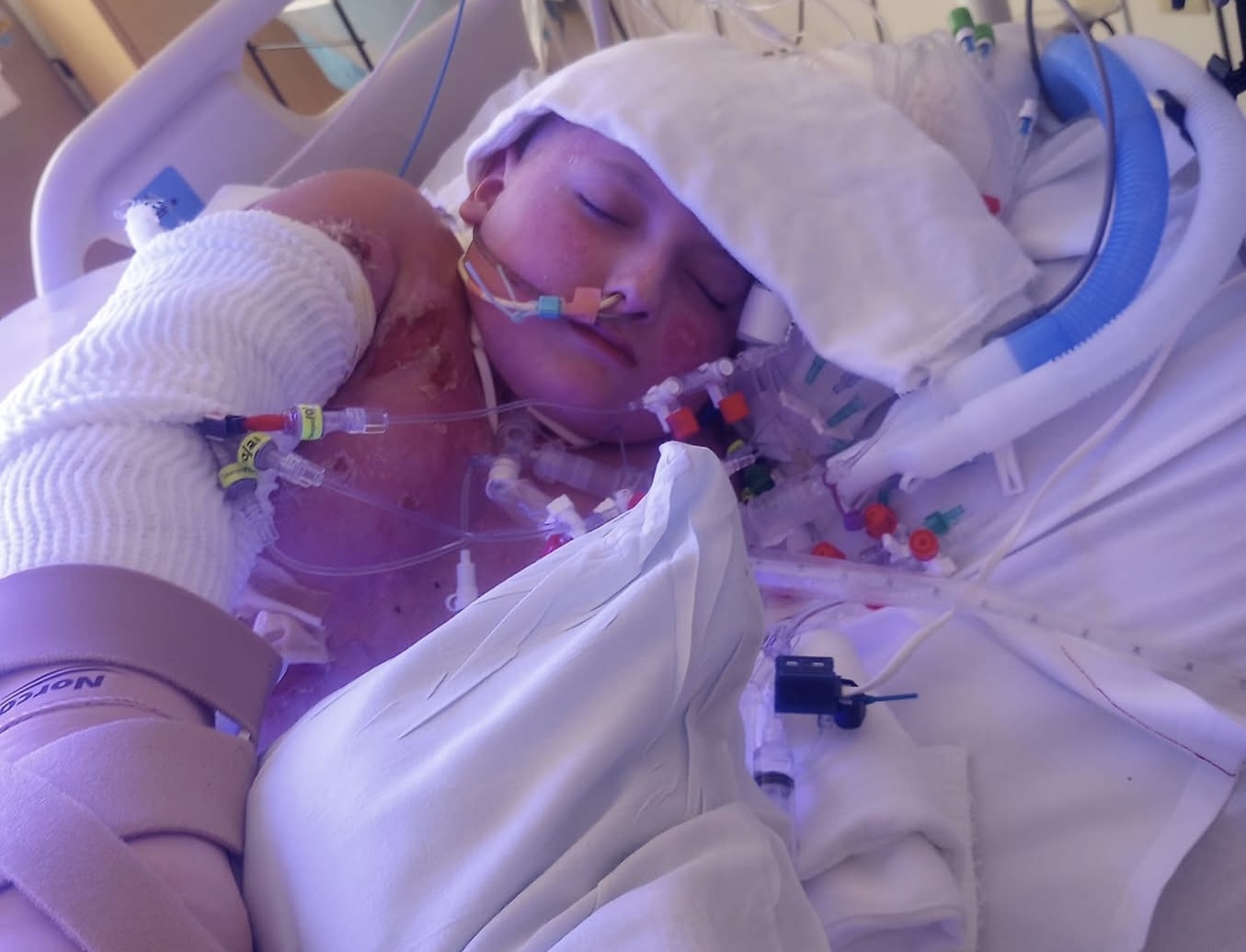 But he was alive, more than a year after a terrifying fire pit accident left him with burns covering 85% of his body.