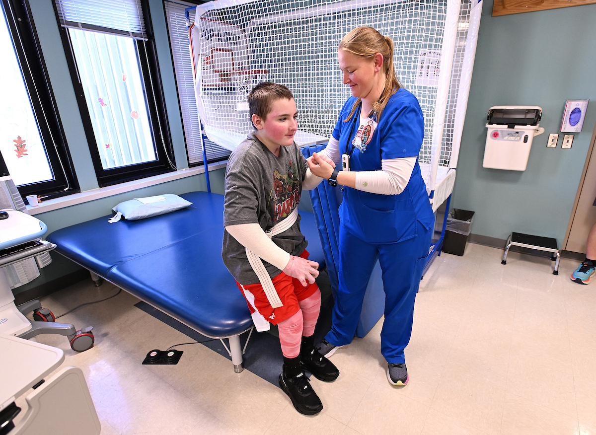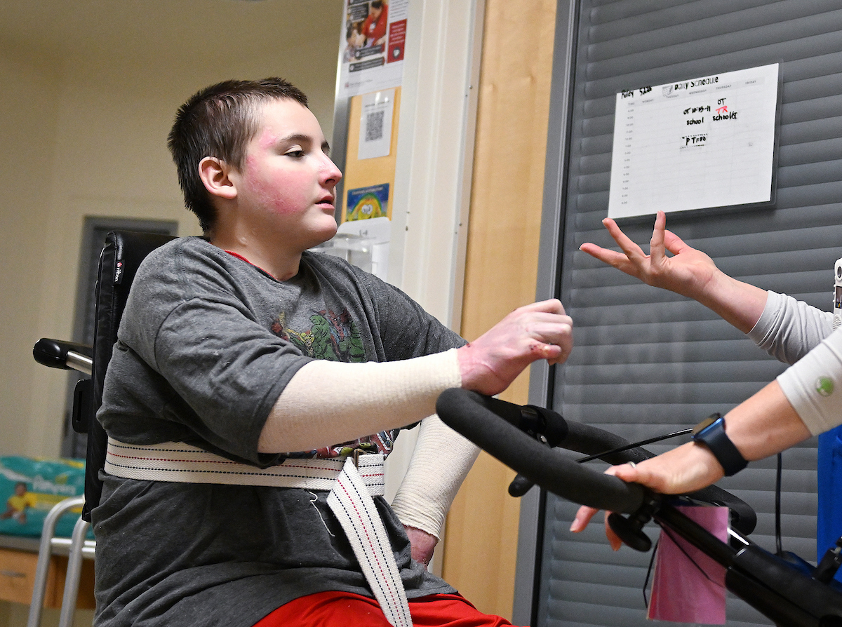 “It’s been neat seeing him from Day 1 to now,” the nurse said, as Riley participated in one of his last therapy sessions with rehab physical therapist Abby Dunlap. “His personality started shining through more and more, and we’re seeing more of that goofy side of him.”