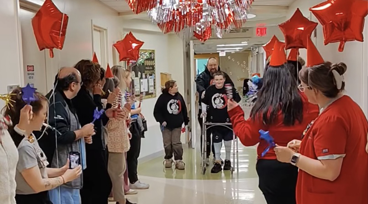 Dr. Fatih Zor was the boy’s surgeon for several operations during his time at Riley and was also there cheering and clapping for the teen as he took his first steps upon discharge last week.