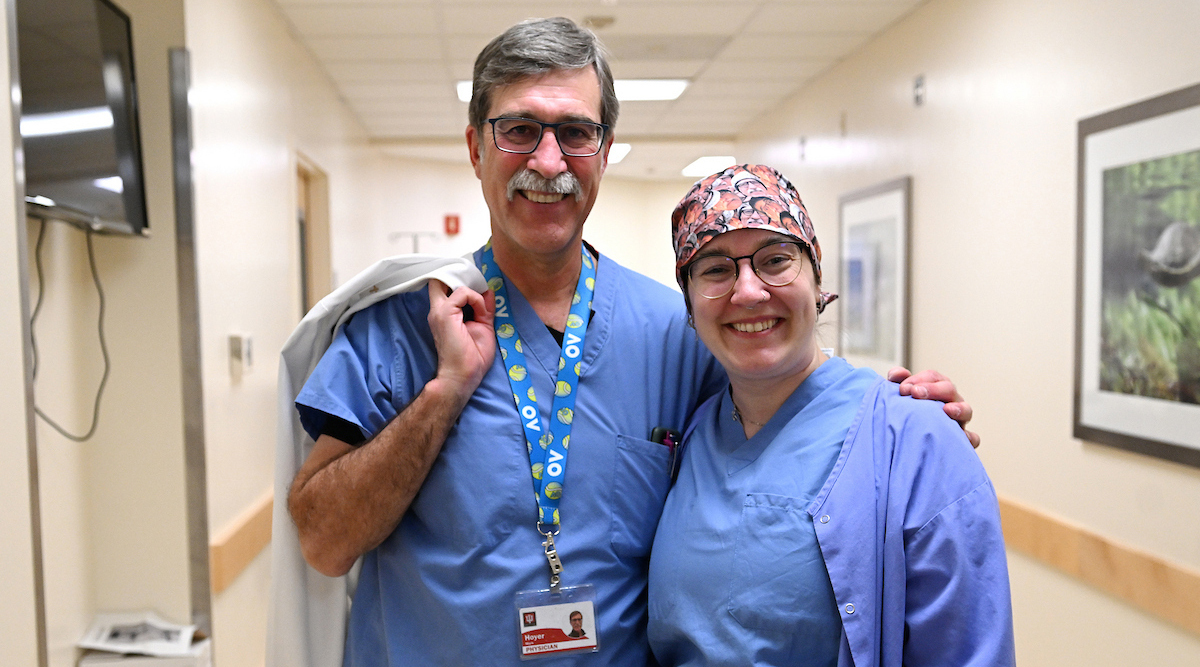 Whether he is doing emergency “surgery” on a stuffed monkey, orchestrating a dance party for his team to let off steam or walking into an exam room to find his patient sporting a fake mustache to match his own, Dr. Mark Hoyer has always made room for humor on the job.