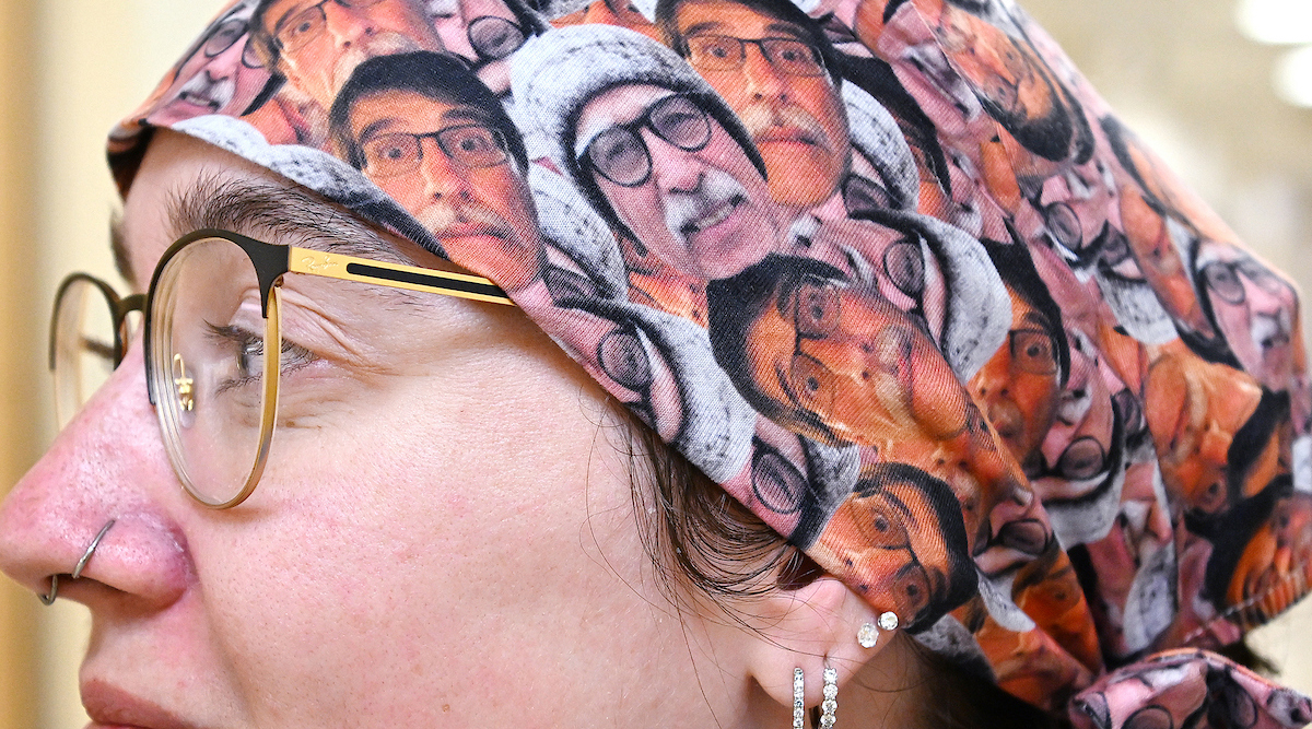 Plenty of his patients and nurses play along, whether it be wearing fake mustaches to match his own or decorating their surgery cap with “the many faces of Dr. Hoyer” just to see if he would notice. (It took him a minute.)