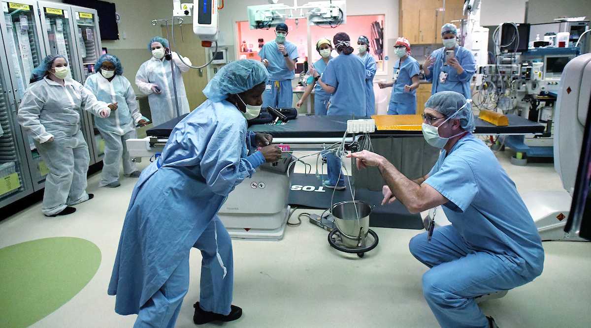 “He is the cath lab,” said Rosie Bland, who started working in the lab in 2015 as a nurse before transitioning to nurse practitioner in 2020. “He has shaped the practitioner I am.”