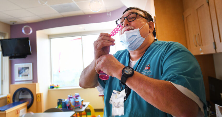 On his last day on 8 East, he made one more trip to the supply cabinet to get bubbles for a patient. Marlowe Bacon is 14, so it’s been a few years since she enjoyed that bit of child’s play. But bubbles aren’t just for little kids, Tekulve said.