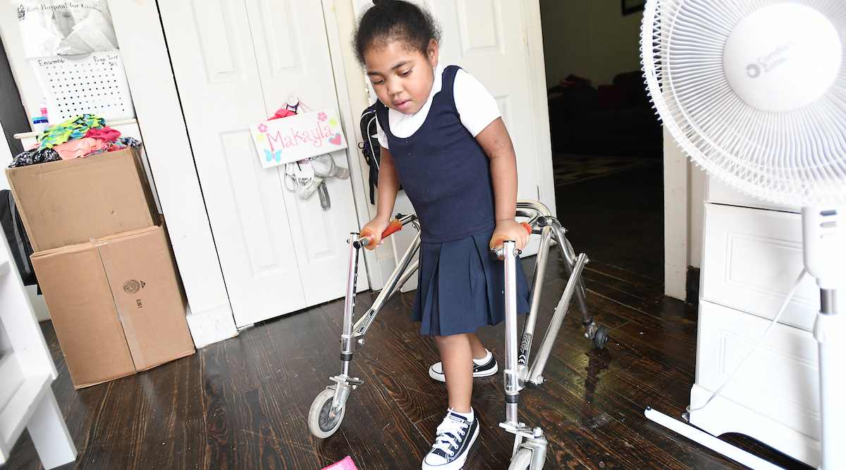 Because of the long hallways, Makayla uses a wheelchair at school, but she gets around pretty well with her walker at home. The hope is that with continued therapy she will regain her strength and begin walking on her own in time.